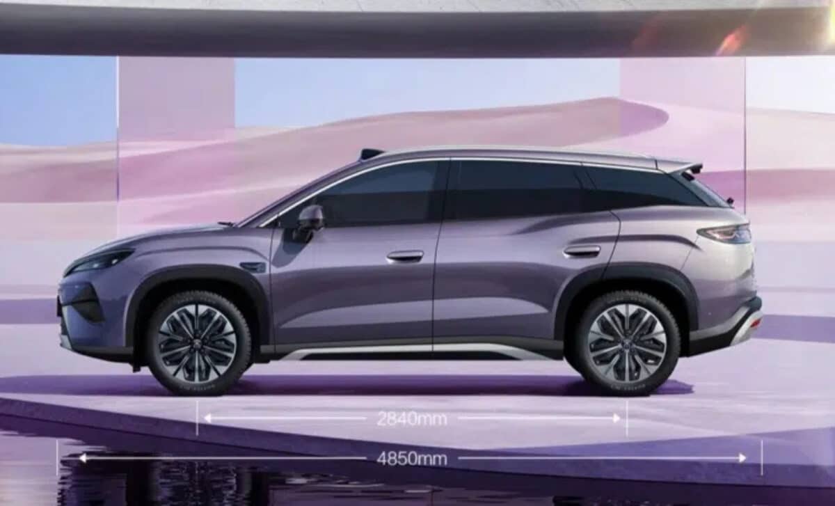 The regulatory documents list the Song Ultra EV at 4,850 mm in length, 1,910 mm in width, and 1,670 mm in height, with a wheelbase of 2,840 mm. These figures place it slightly above the Song L DM-i PHEV in overall size.