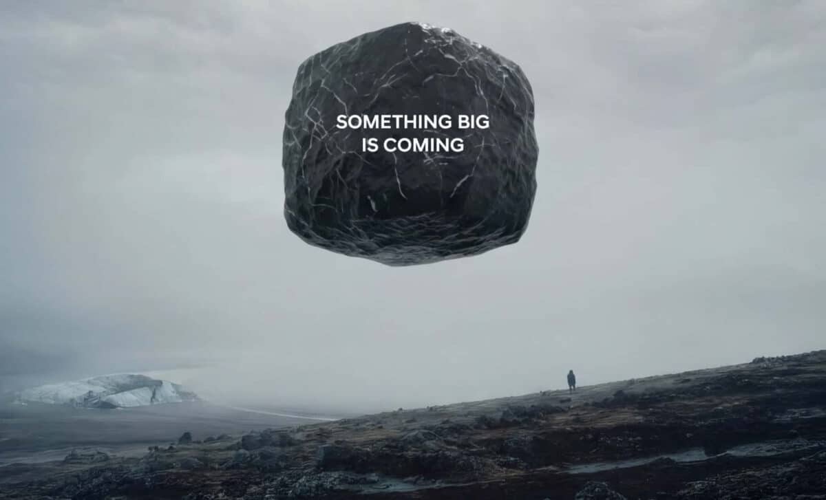 The teaser video shows a cube-like rock rotating in midair within a barren landscape. A lone figure appears walking toward the camera, though no additional context is provided about their role or the setting. According to Motor1, these elements form the entirety of the clip, reinforcing the lack of concrete details.