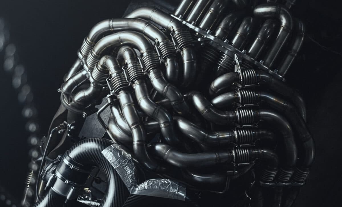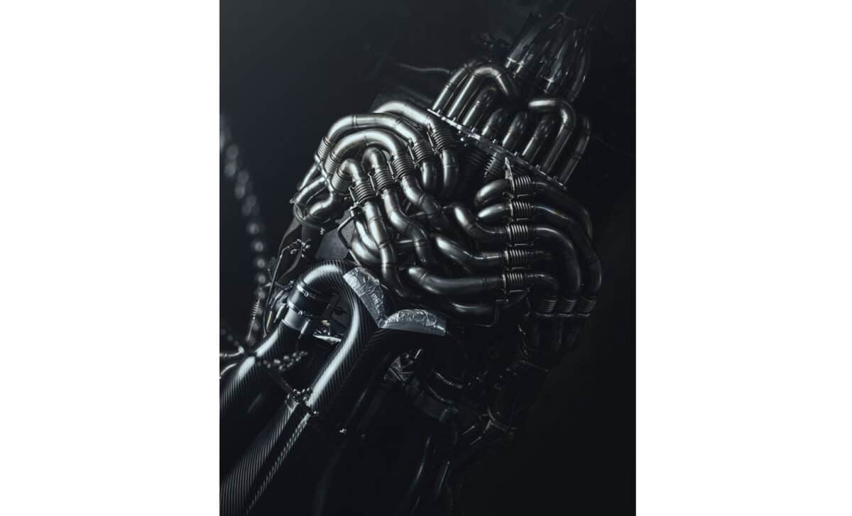 In its final configuration, the P900’s engine is unlike anything currently in production. Photos released by the company show a web of exhaust piping that appears to double the volume of the engine itself, reports Car Buzz. These aren’t clean, minimalist manifolds: they’re complex, visibly hand-welded, bolted together in segments, with extensive heat shielding and auxiliary lines. The 12:1 exhaust manifold design terminates in a cylindrical outlet that resembles a jet turbine more than a car part.